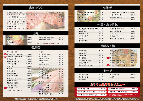 うどん屋さんのように種類の少ない店から100品を越える種類を扱っている居酒屋さんまで